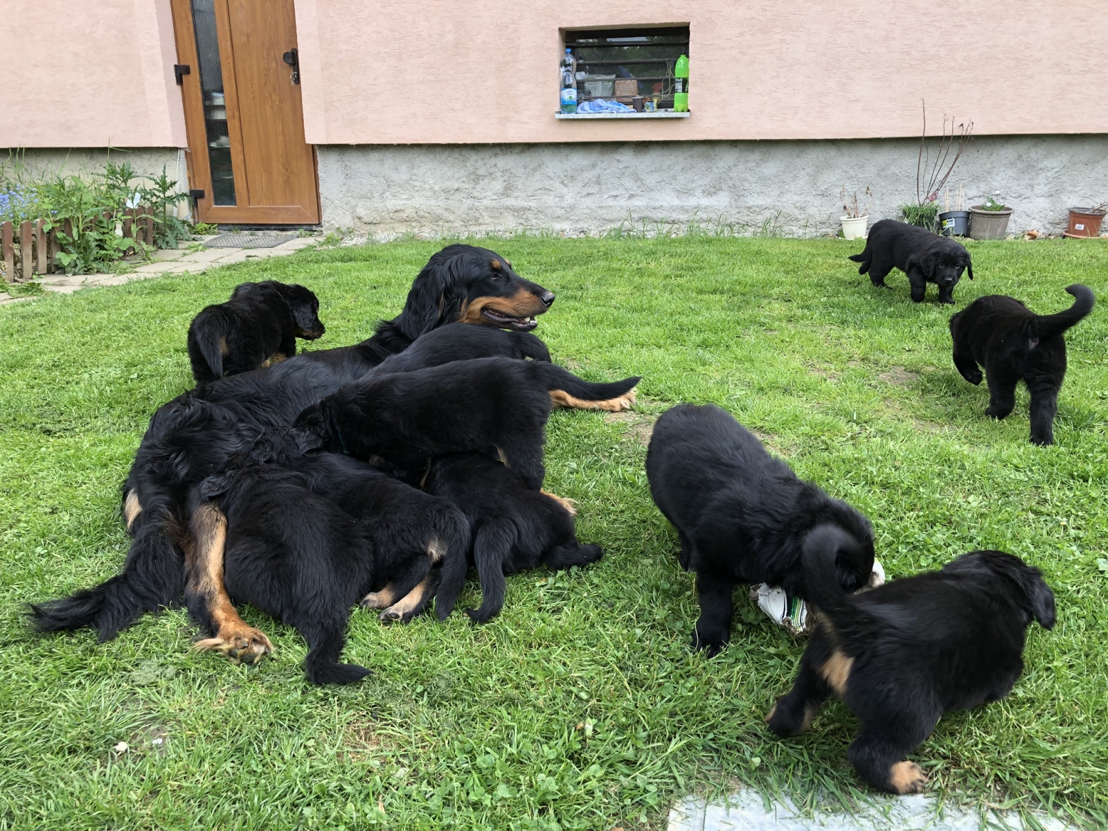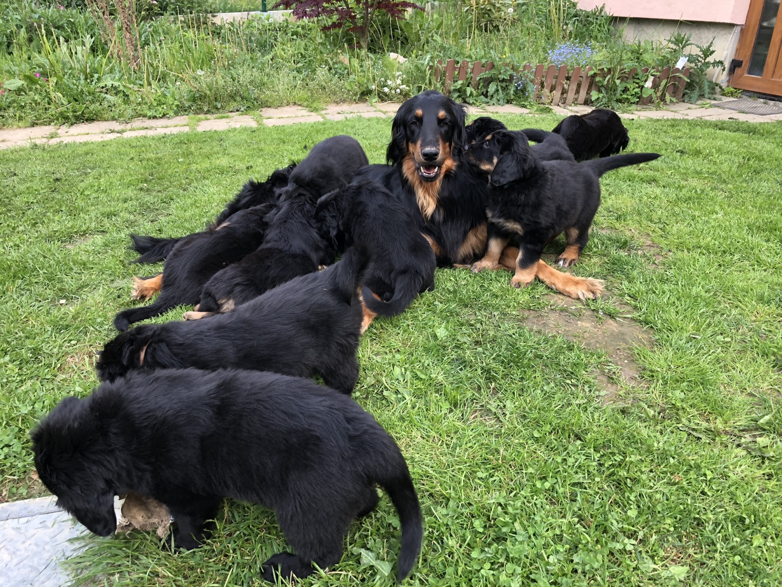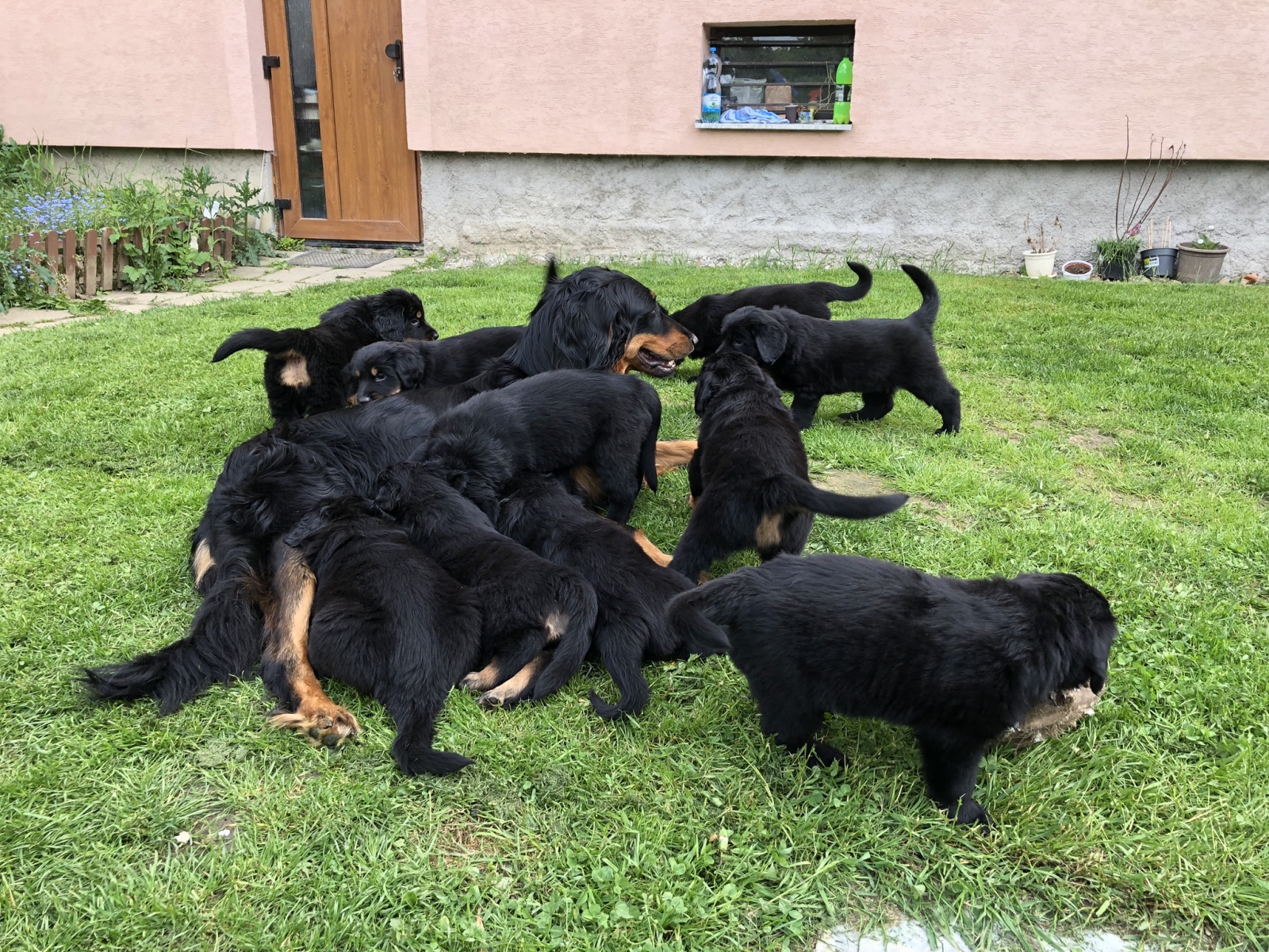 A takhle to vypadá, když se vyhrnou všechna štěňátka z ohrádky na zahradu za mámou:-))