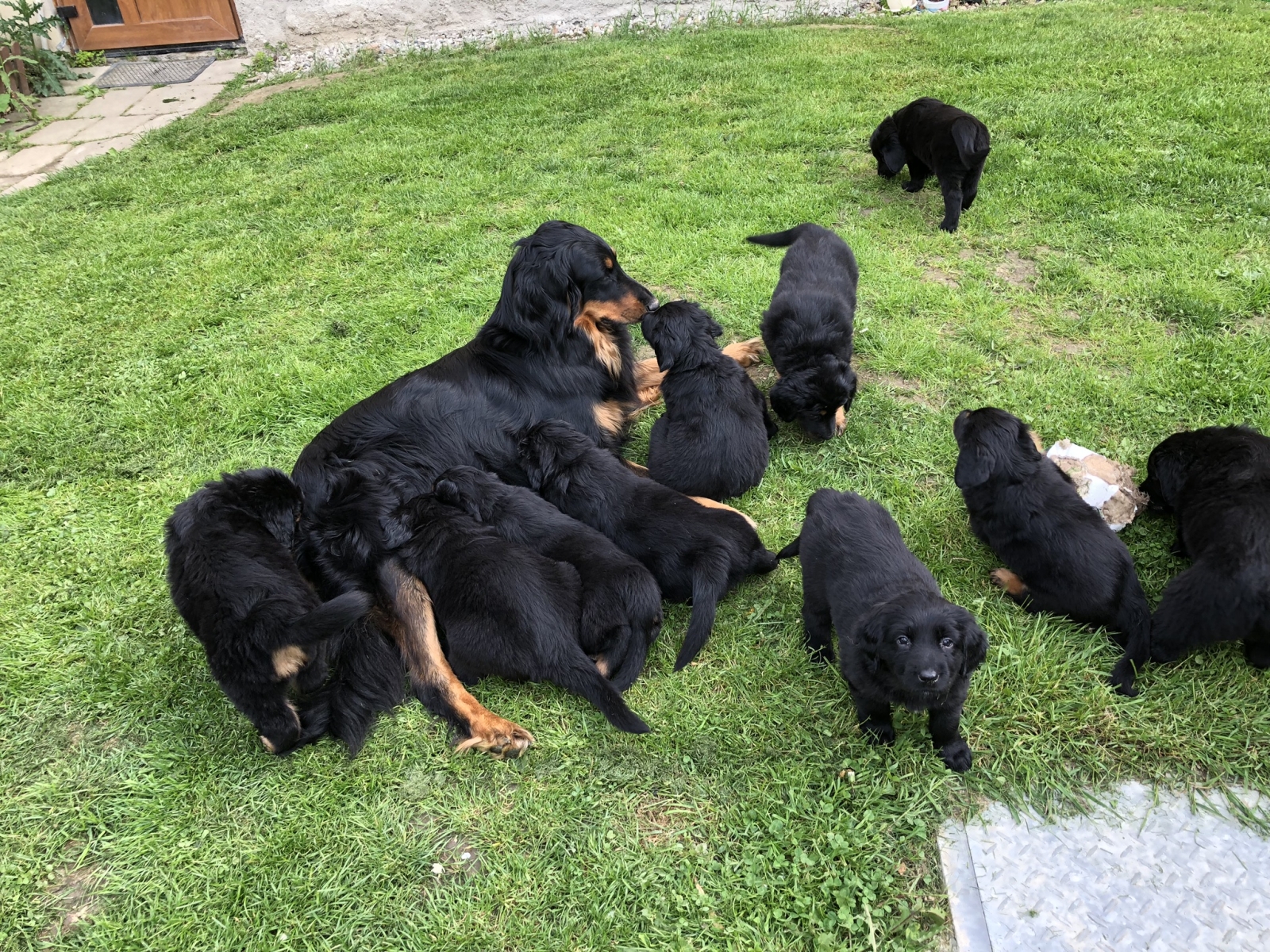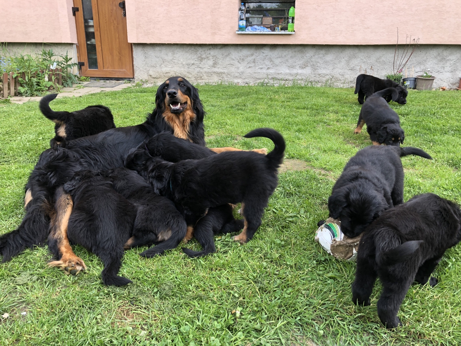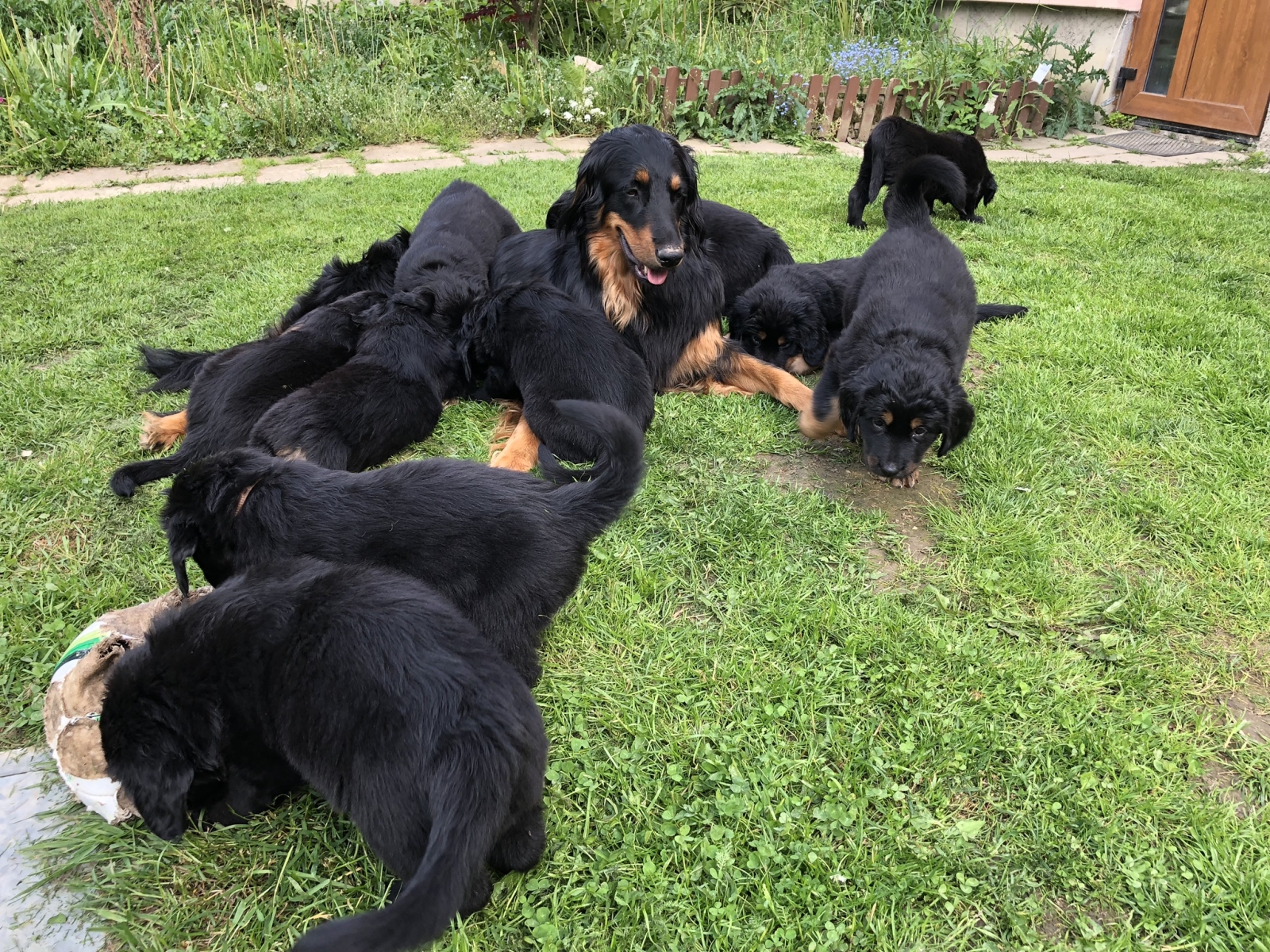 A takhle to vypadá, když se vyhrnou všechna štěňátka z ohrádky na zahradu za mámou:-))
